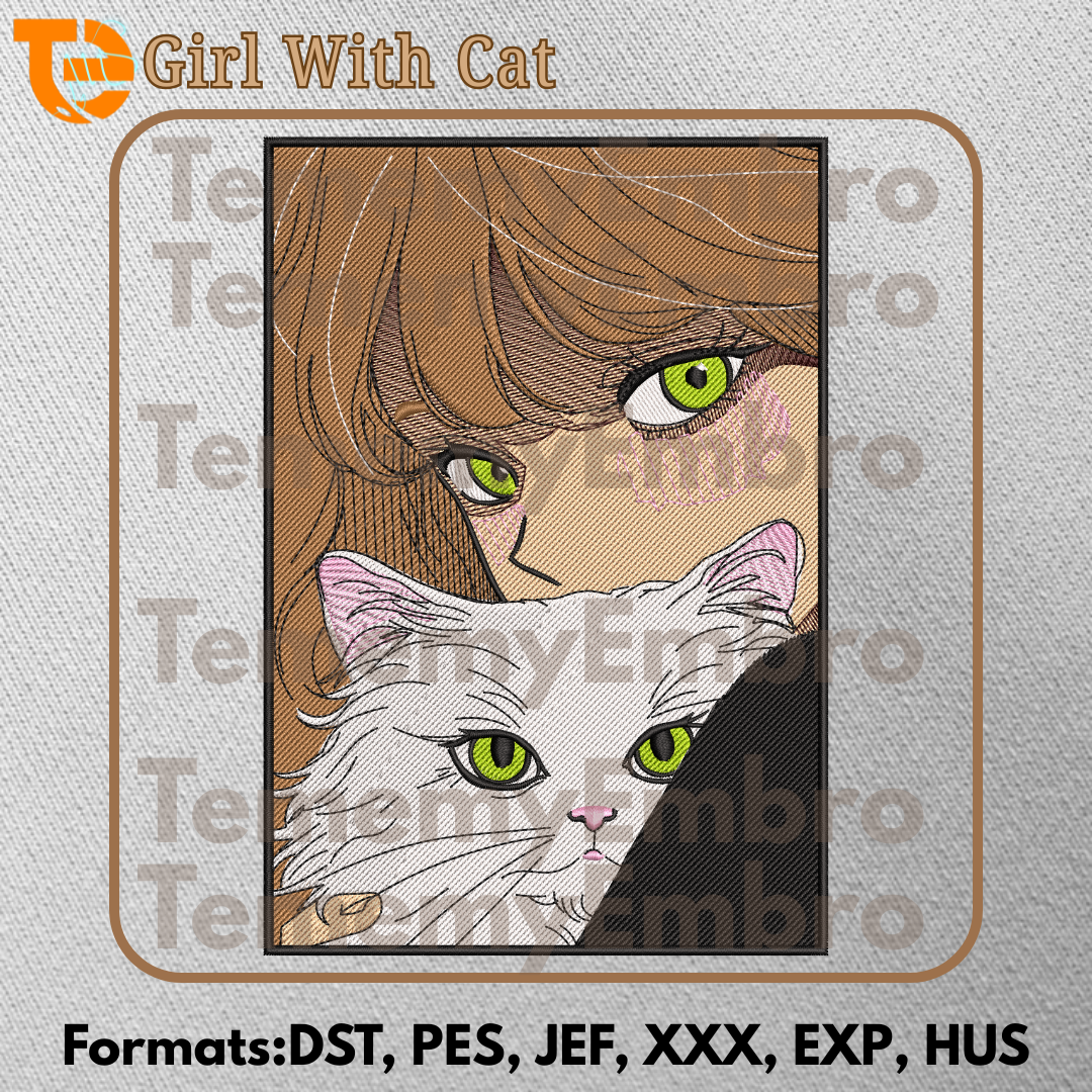 Elevate your embroidery projects with this premium [Anime Girl and White Cat] design. 🪄🧵