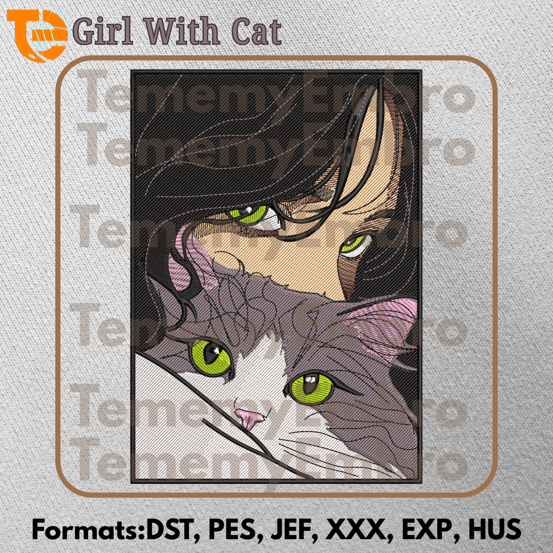 Elevate your embroidery projects with this premium [girl with cat] design. 🪄🧵
