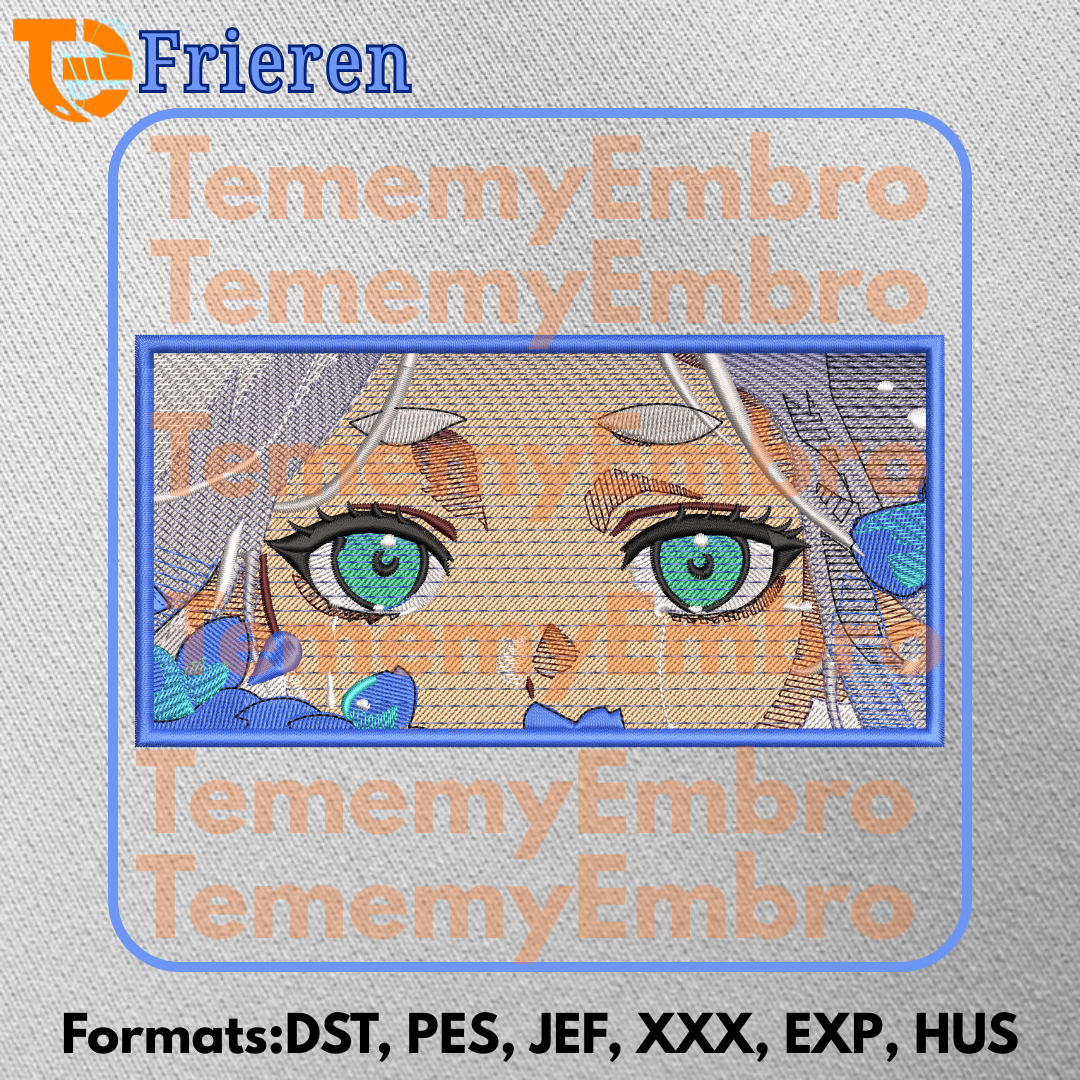 “Step into the magical world of the long-lived elf with our  Frieren  Anime Embroidery Design. This flagship piece of anime embroidery art captures the serene and timeless gaze of Frieren, the legendary mage from Frieren: Beyond Journey’s End. Meticulously digitized to handle her intricate silver hair and iconic green eyes, this Frieren embroidery file is optimized for high-density stitching, ensuring a professional and luxurious finish on any fabric. Whether you’re customizing premium apparel or creating unique wall art for anime fans, this exclusive digital embroidery pattern is a must-have for your collection. Download your instant Frieren anime art today and complete your journey through the Lands Between. Includes formats: DST, PES, JEF, XXX, EXP, HUS. Round out your legendary party by checking out our [Himmel], [Fern], and [Stark] eyes designs available in this special collection.”