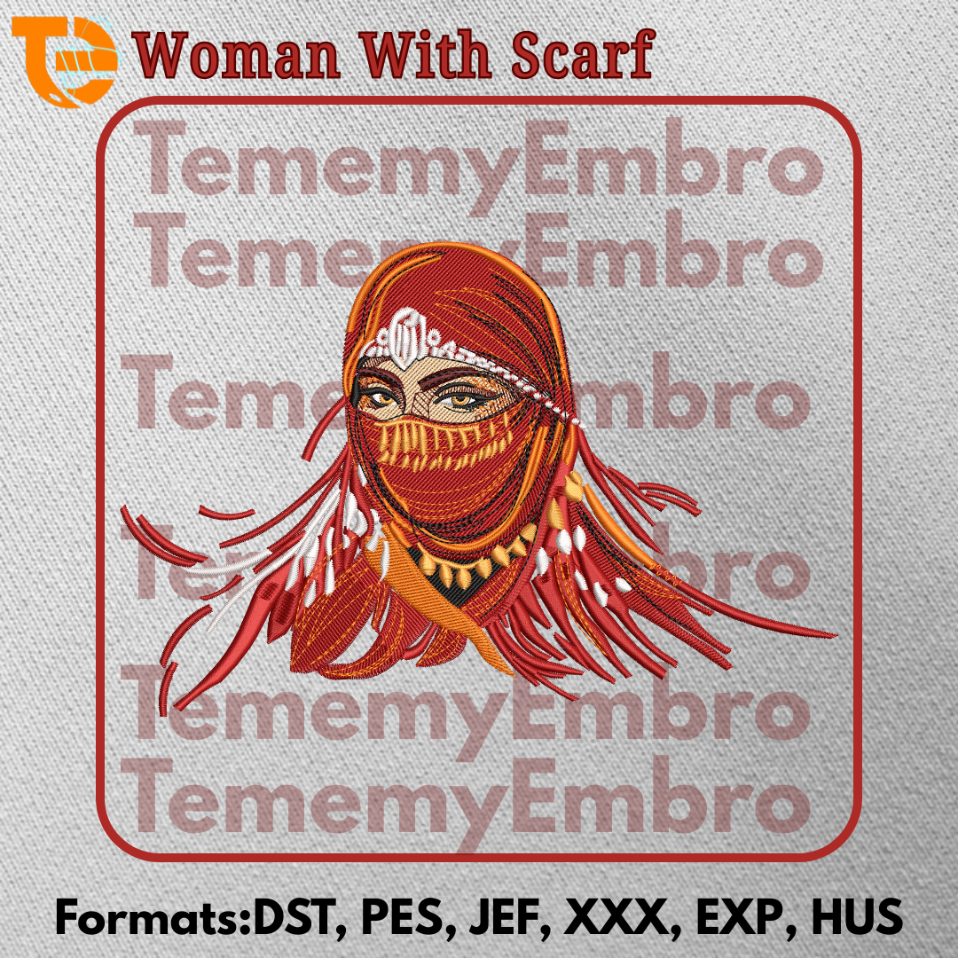 “Celebrate the beauty of traditional elegance with this Woman With Scarf Embroidery Design. This intricate Arabian-style pattern highlights the stunning details of a veiled woman adorned with cultural jewelry, making it a perfect piece for ethnic art lovers. This high-quality digital embroidery file is designed for precision stitching on jackets, cushions, or wall hangings. Download your instant digital pattern now and add a touch of mystery to your next project.”